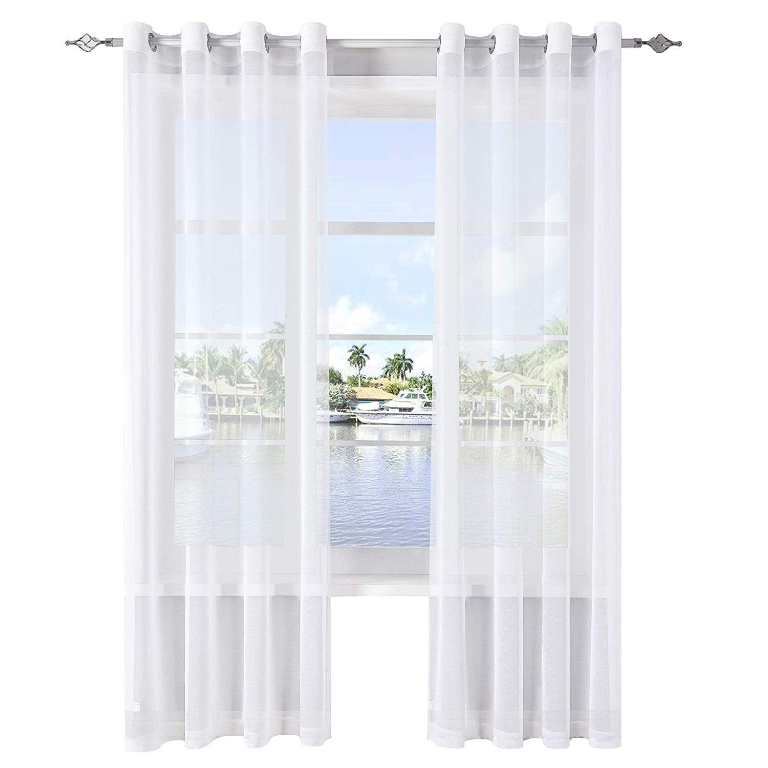 Lot de 2 Voilages BLANCS Décoration en Effet Lin pour Chambre à Oeillets Rideau Transparent